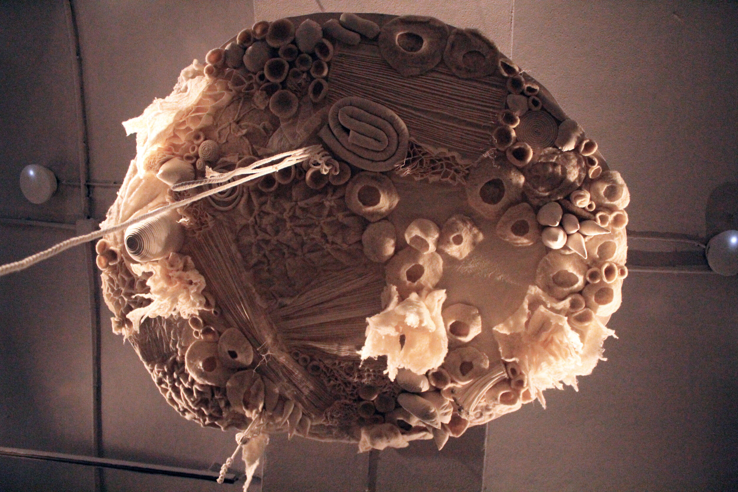 La obra se formaliza mediante dos piezas. En el suelo, una crisálida de tamaño humano que envuelve un ser incorpóreo y magmático. En la parte superior, a modo de extensión de la primera pieza, se reflejan todos los códigos emocionales que es despliegan en una cartografía textil.
